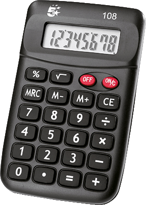Taschenrechner mit 8- stelligem Display. Batteriebetrieben.Farbe: schwarz.