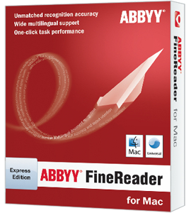ABBYY Finereader Express Edition. Min. benötigter Festplattenplatz: 500 MB, Min. benötigter RAM: 256 MB, Kompatible Betriebssysteme: Mac OS X 10.4, 10.5, 10.6.. Unterstützte Sprachen: Deutsch, Niederländisch, Englisch, Spanisch, Französisch, Italienisch, Portugiesisch, RUS