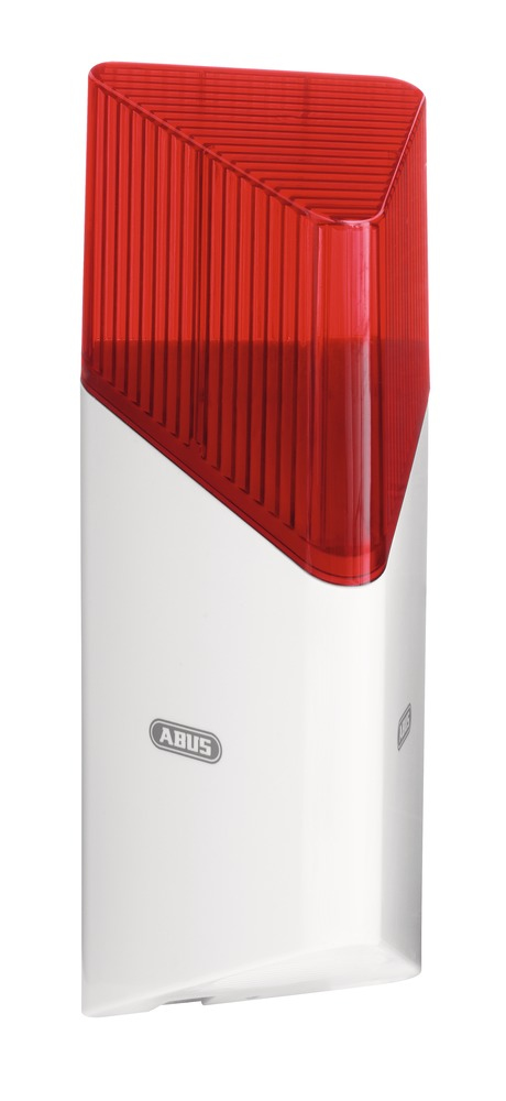 - Abschreckende Alarmierung mit lautstarker Sirene (bis zu 100 dB) und rotem LED-Blitzlicht