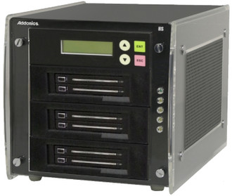 Addonics 1:5 M2 2.5" Duplicator. Unterstützte Hard-Disk Drive Größen: 2.5 Zoll, HDD Schnittstellen: mSATA. Stromversorgung: 150 W, AC Eingangsspannung: 110-240 V. Abmessungen (BxTxH): 208 x 298 x 203 mm, Gewicht: 4,63 kg. Anzeige: LCD