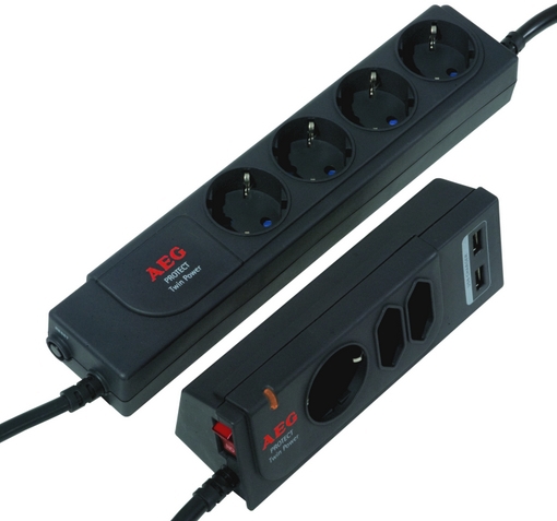 Mit dem PROTECT TwinPower. bietet Ihnen AEG eine flexible Überspannungslösung für den Schreibtisch. Mit 7 Steckdosen bietet der TwinPower genug Platz für alle Peripheriegeräte rund um den Computer. Durch seine zweigeteilte Ausführung können die Anschlussleitungen flexibel verstaut werden. Der erste Teil dient z.B. der Stromversorgung von Rechner, Drucker und Monitor. Im zweiten Teil der Überspannungsschutzleiste befindet sich der Netzschalter über den der TwinPower vom Netz getrennt werden kann. Somit werden Verluste durch den Standby-Betrieb angeschlossener Geräte vermieden. Weiterhin besitzt die Schreibtischeinheit 3 weitere Steckdosen. Über die beiden geschützten USBAnschlüsse können z.B. Handy und MP3-Player geladen werden.