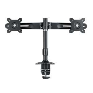 Kontrollieren Sie mit der Schreibtischklemmhalterung DMC-02D zwei Monitore und sparen Sie dabei noch Platz. Das ergonomische Design ermöglicht ein schnelles Neigen, Schwenken und Drehen sowie die Höhenverstellbarkeit. Dank der robusten Angelpunkte und Rahmenkonstruktion eignet sich die Halterung DMC-02D für Monitore mit einem Gewicht von bis zu 12 kg je Angelpunkt und hält mühelos dem langfristigen Dauerbetrieb stand. Die Halterung ist mit dem VESA-Standard kompatibel und unterstützt verschiedene Monitore unter 24 Zoll.