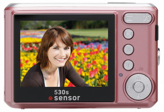 Ein 2,4 Zoll großes TFT-LCD Display unterstützt bei der Motivwahl und zeigt die aufgenommenen Bilder. Sprachaufzeichnung und die Aufnahme von Videos sind ebenfalls möglich. Die sensor 530s ist mit einem Strom sparenden CMOS-Sensor und einen internen 16 Megabyte Speicher ausgestattet.