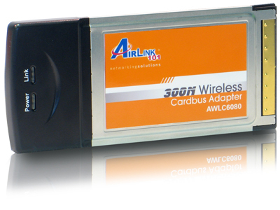 AirLink 300N Wireless Cardbus Adapter. Übertragungstechnik: Kabellos, Hostschnittstelle: CardBus. Datenübertragungsrate (Maximum): 300 Mbit/s, Datenrate: 1, 2, 5.5, 6, 9, 11, 12, 18, 24, 36, 48, 54. Unterstützte Sicherheitsalgorithmen: WPA. Zertifizierung: RoHS, FCC, CE, IC. Konformität mit Industriestandards: EEE 802.11b, 802.11g, IEEE 802.11n, IEEE 802.11x, Abmessungen (BxTxH): 120 x 50 x 5 mm, Kompatible Betriebssysteme: Windows 2000/XP/Vista