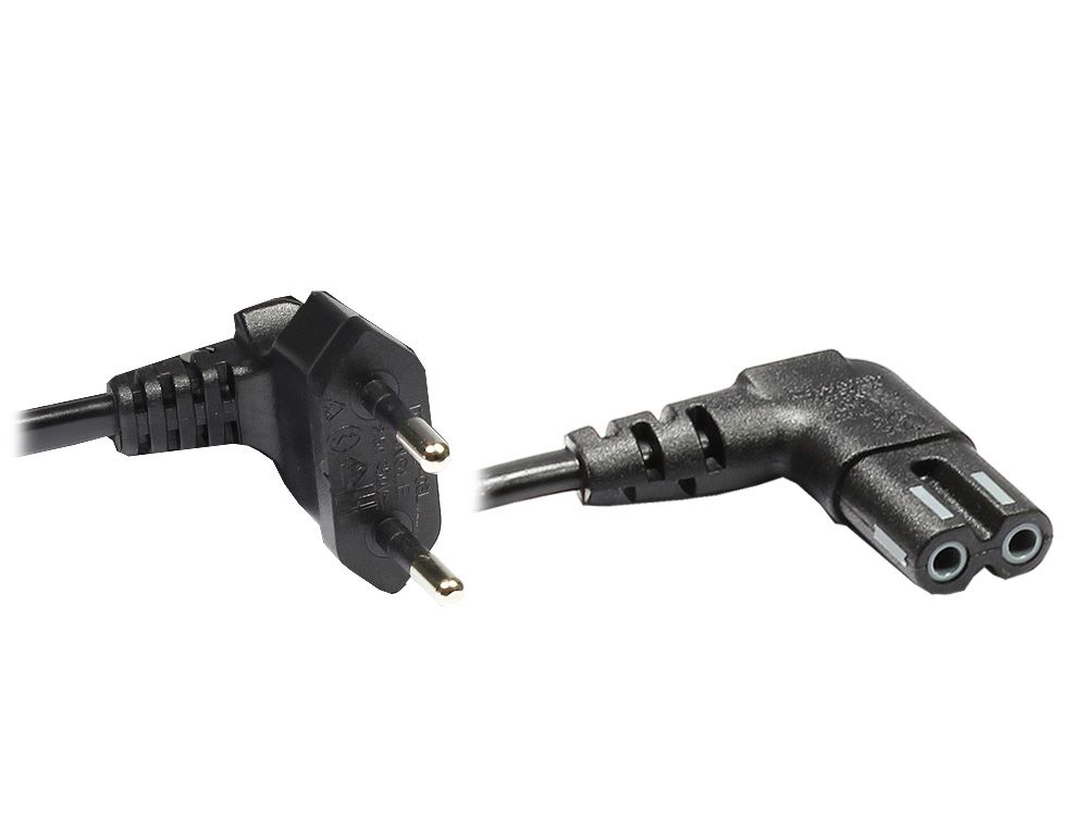 Euro-Netzkabel, Netzstecker an Euro 8 Buchse, beidseitig 90° abgewinkelt, schwarz, 0.75m, Good Connections