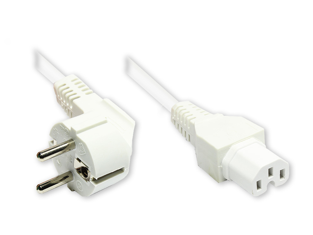 Netzkabel Schuko-Stecker an Warmgerätebuchse, Typ F gewinkelt an C15, weiß, 2m, Good Connections
