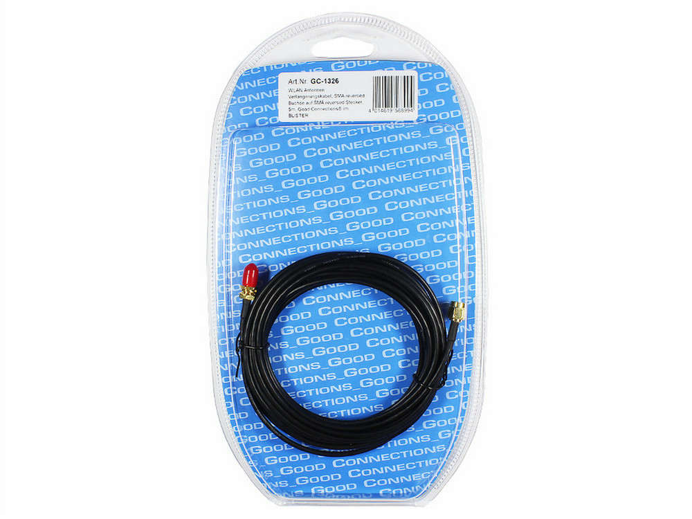WLAN Antennen Verlängerungskabel, SMA reversed Buchse auf SMA reversed Stecker, 5m
