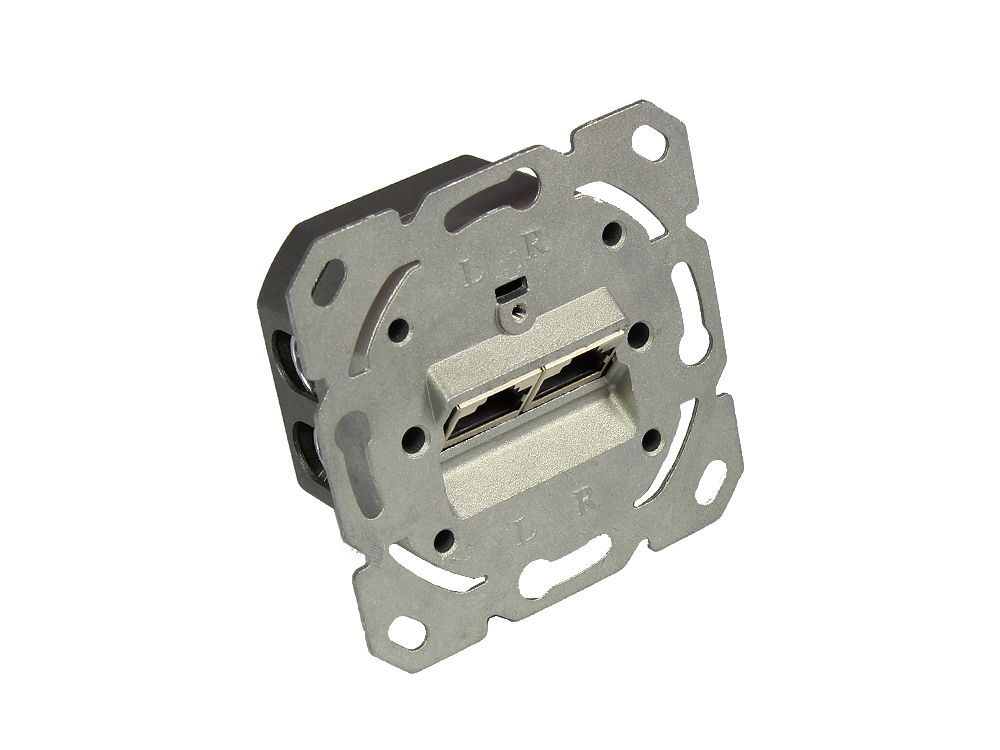 Netzwerkdose Cat. 6A, 2xRJ45, geschirmt, vertikale Kabelzuführung, ohne Zentralstück/-Abdeckrahmen