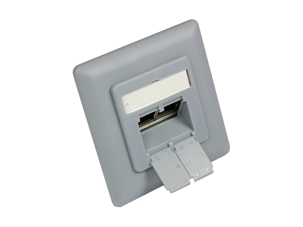 Netzwerkdose Cat. 6A, 2xRJ45, geschirmt, UP, vertikale Kabelzuführung, inkl. Zentralstück und Abdeckrahmen, silbergrau (matt) RAL7001