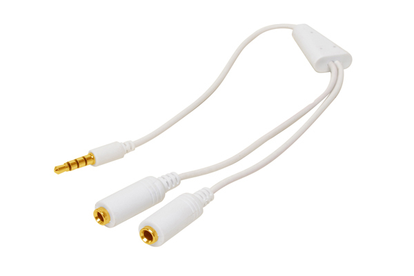 Y-Adapterkabel - Anschluss1: 4-pol 3,5mm Stecker - Anschluss2: 2 x 4-pol, 3,5mm Buchse - weiß - vergoldete Kontakte - 0,2m