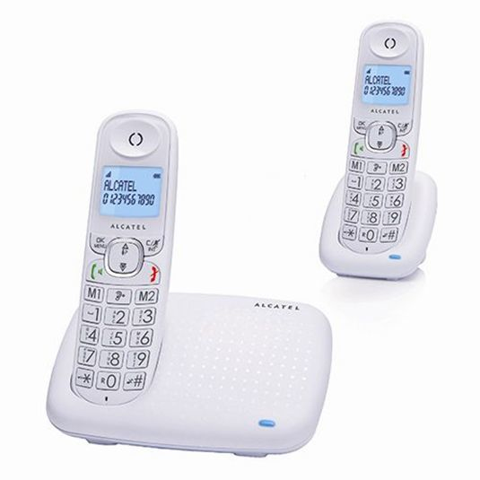 Alcatel Confort XL 375 Duo. Typ: DECT, Maximum Innenabstand: 50 m, Maximum Außenabstand: 300 m. Befestigungstyp: Tisch/Bank, Produktfarbe: Weiß. Telefonbuch Kapazität: 50 Eintragungen. Farbe der Hintergrundbeleuchtung: Blau. Akku-/Batterietyp: AAA, Gesprächszeit: 10 h, Bereitschaftszeit: 100 h