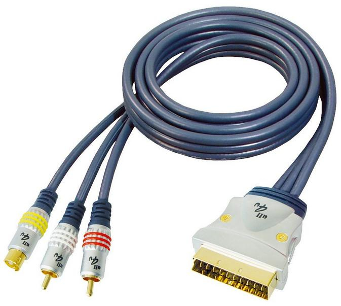 BBV 7, SCART - 4 pol. Hosiden + 2x RCA, 3m, dunkelblau