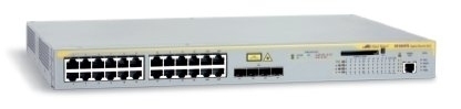 Allied Telesis AT-9424TS. Switch-Typ: Managed network switch, Switch-Ebene: L3. Netzstandard: IEEE 802.1d,IEEE 802.3,IEEE 802.3ab,IEEE 802.3ac,IEEE 802.3u,IEEE 802.3x,IEEE 802.3z. MAC-Adressentabelle: 16000 Eintragungen, Routing-/Switching-Kapazität: 48 Gbit/s, Durchgang: 71,424 Mpps. Unterstützte Sicherheitsalgorithmen: SSH. Management-Protokolle: Web, Telnet, CLI, SNMP