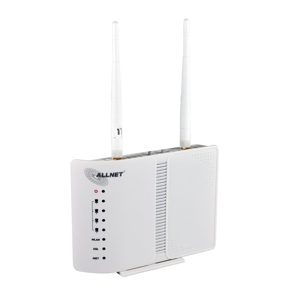 ALLNET ALL500VDSL2. Top WLAN-Standard: IEEE 802.11n, WLAN-Standards: IEEE 802.11b, IEEE 802.11g, IEEE 802.11n, Modulation: 1024-QAM, 16-QAM, 256-QAM, 64-QAM, 8-QAM, BPSK, CCK, OFDM, QPSK, ROBO. Schnittstellentyp Ethernet-LAN: Schnelles Ethernet, Verkabelungstechnologie: 10/100Base-T(X). Netzstandard: IEEE 802.11b, IEEE 802.11g, IEEE 802.11n. Unterstützte Sicherheitsalgorithmen: 128-bit WEP, 64-bit WEP, WPA-PSK, WPA2-PSK, WPS. Produktfarbe: Weiß, LED-Anzeigen: DSL, LAN, Leistung, WLAN