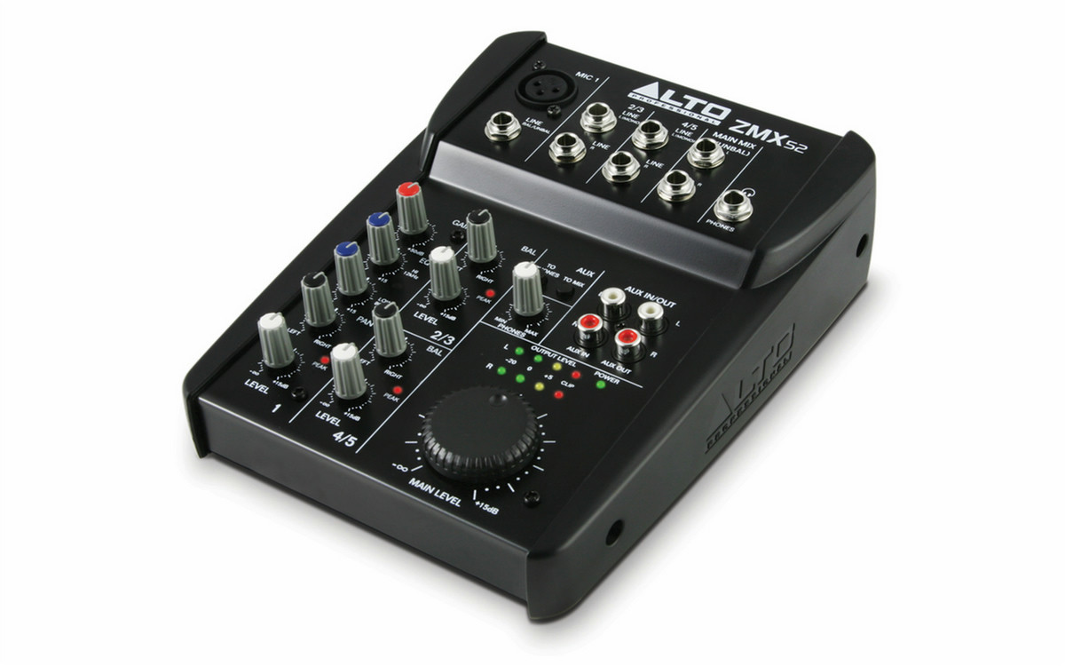 Alto ZMX52. Frequenzbereich: 20 - 22000 Hz. Synchronisations-Eingangsimpedanz: 3900 Ohm. THD, totalklirren: 0,005%. Stromverbrauch (typisch): 9 W. Breite: 128,1 mm, Tiefe: 204 mm, Höhe: 38 mm