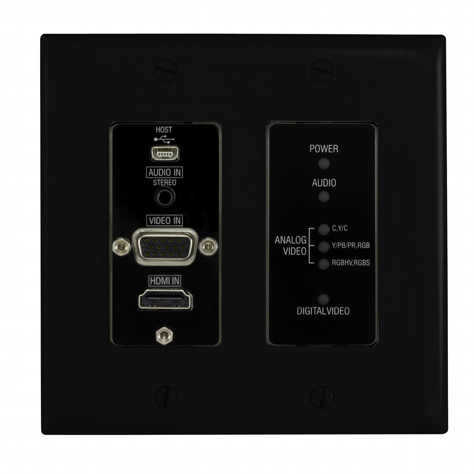 AMX DXLink Multi-Format Decor Style. Breite: 88,4 mm, Höhe: 103,1 mm, Tiefe: 57,2 mm. Produktfarbe: Schwarz. Zertifizierung: CE, FCC, UL, cUL, RoHS / WEEE