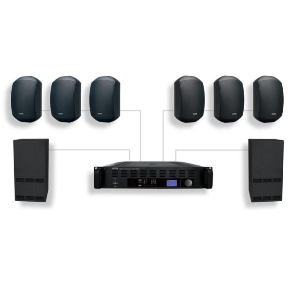 Die Party kann losgehen! BARSET ist eine vorteilhafte Kombination aus Klang, Leistung und Zuverlässigkeit. Dieses Set bringt den Groove in jede Bar oder an jeden Veranstaltungsort, an dem Musik in Hintergrund-, Party- oder Clublautstärke gespielt werden soll. Sechs MASK6T Lautsprecher erzeugen kristallklare Höhen und Mitten, während zwei SUB2201 Subwoofer für eine leistungsstarke Basswiedergabe sorgen. Der vielseitige CHAMP-3D besitzt einen internen DSP mit drei Betriebsstufen. Dank seiner einzigartigen lüfterlosen Bauweise, ist er zudem unempfindlich gegenüber Staub, Fett oder Rauch.