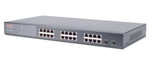 APC 24 Port 10/100/1000 Ethernet Switch with 2 Gig Uplink. Datenrate: 10/100/1000 Mbps, Max. Datenübertragungsrate: 1 Gbit/s. Kompatibilität: cUL Listed,CE,EN 60950,FCC Part 15 Class A,TUV,UL Listed. Gewicht: 2,94 kg. Abmessungen (BxTxH): 440 x 224 x 44 mm, Verpackungsabmessungen (BxTxH): 521 x 318 x 102 mm, Netzwerkfunktionen: Ethernet/Fast Ethernet