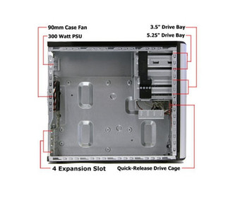 Apex Computer Technology TM-163. Formfaktor: Micro-Tower, Typ: PC, Material: Edelstahl. Stromversorgung: 300 W. Breite: 182,9 mm, Tiefe: 391,2 mm, Höhe: 361,9 mm. Netzteiltyp: ATX V2.2, Ventilator: 1x 80mm, 1x 90mm, interne Laufwerkseinschübe: 1x 3.5"