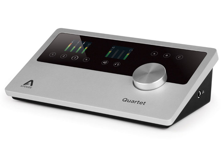Apogee Quartet. Maximaler Eingangspegel: 6 dBV, Dynamischer Bereich: 114 dB. Audioqualität: 24 Bit, Samplerate: 192 kHz, Frequenzbereich: 44,1 - 96 Hz. Variable Verstärkung des Mikrofons: 75 dB. Produktfarbe: Schwarz, Silber. Kompatible Betriebssysteme: iOS, Mac, Minimum Prozessor: 1.5, Min. benötigter RAM: 2 MB
