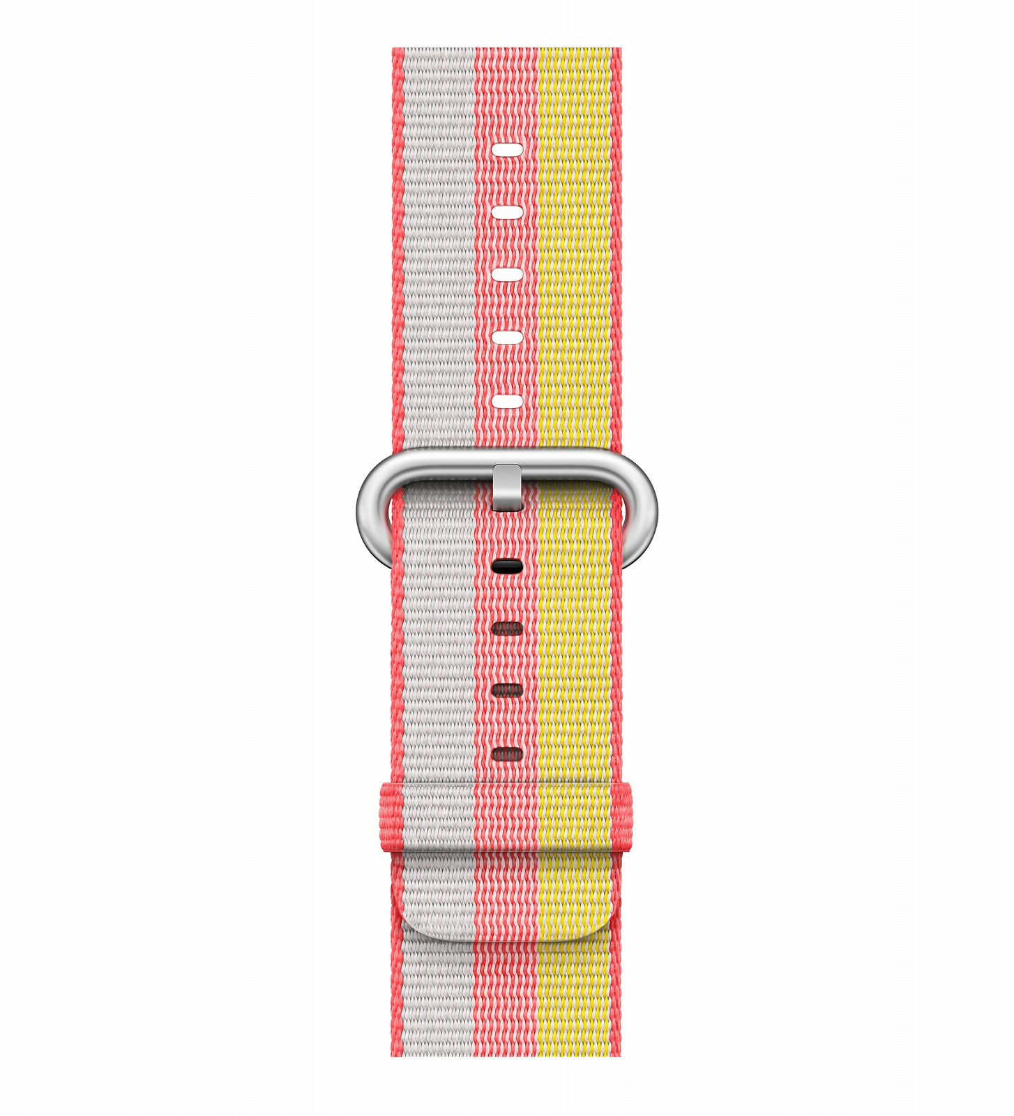 Jedes Armband aus gewebtem Nylon besteht aus über 500 synthetischen Fäden, verwebt zu einem einzigartigen, farbig gemusterten Gewebe. Vier Lagen dieses Gewebes werden jeweils zu einem stabilen Armband verflochten, das sich so angenehm wie Stoff anfühlt.