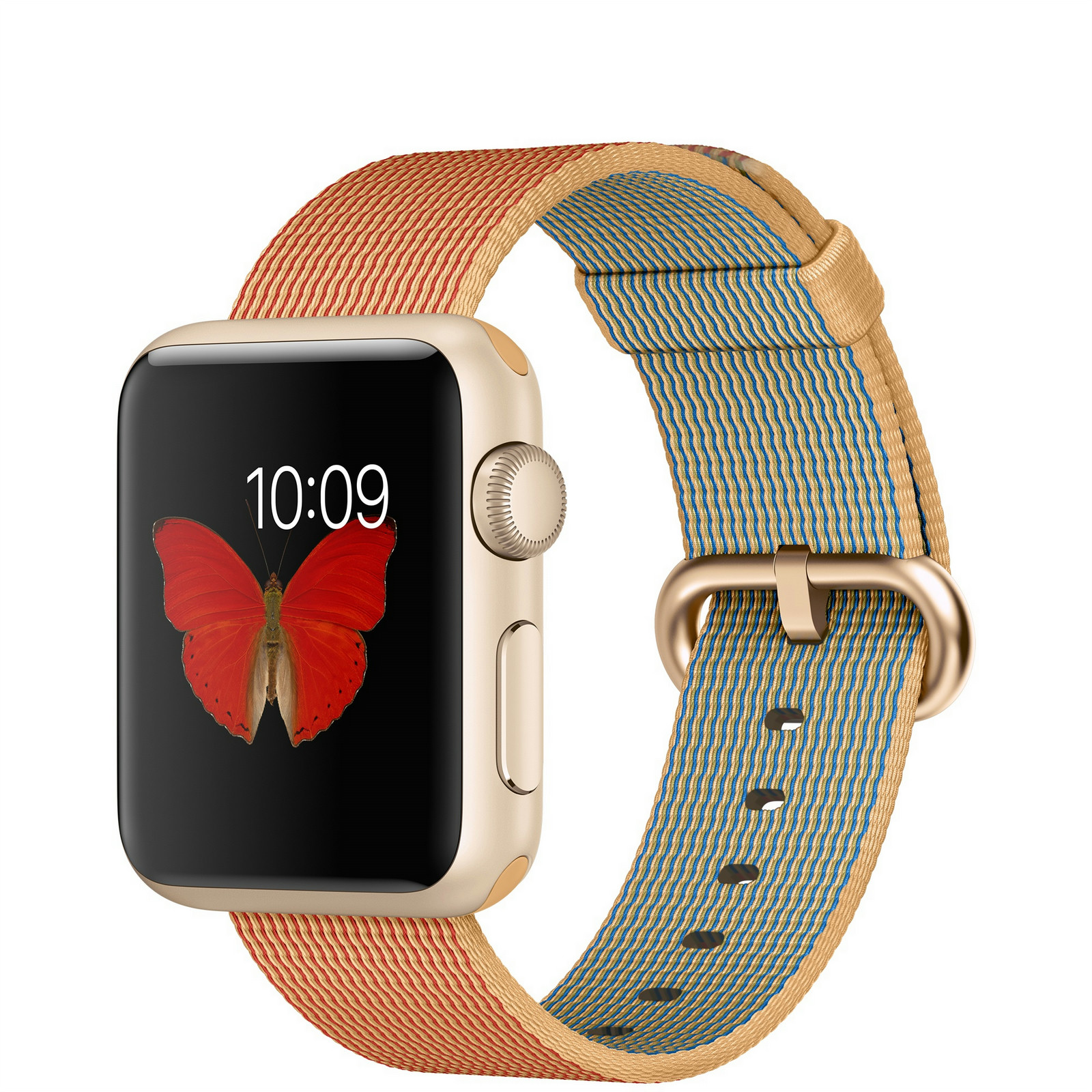 Apple Watch Sport. Gehäusefarbe: Gold, Gehäusematerial: Aluminium, Armbandfarbe: Gold, Rot. RAM capacity: 512 MB, Flash-Speicher: 8 GB. WLAN-Standards: 802.11b,802.11g,802.11n. Batterietechnologie: Lithium-Ion (Li-Ion), Batterielebensdauer: 18 h. Breite: 33,3 mm, Tiefe: 38,6 mm, Dicke: 1,05 cm