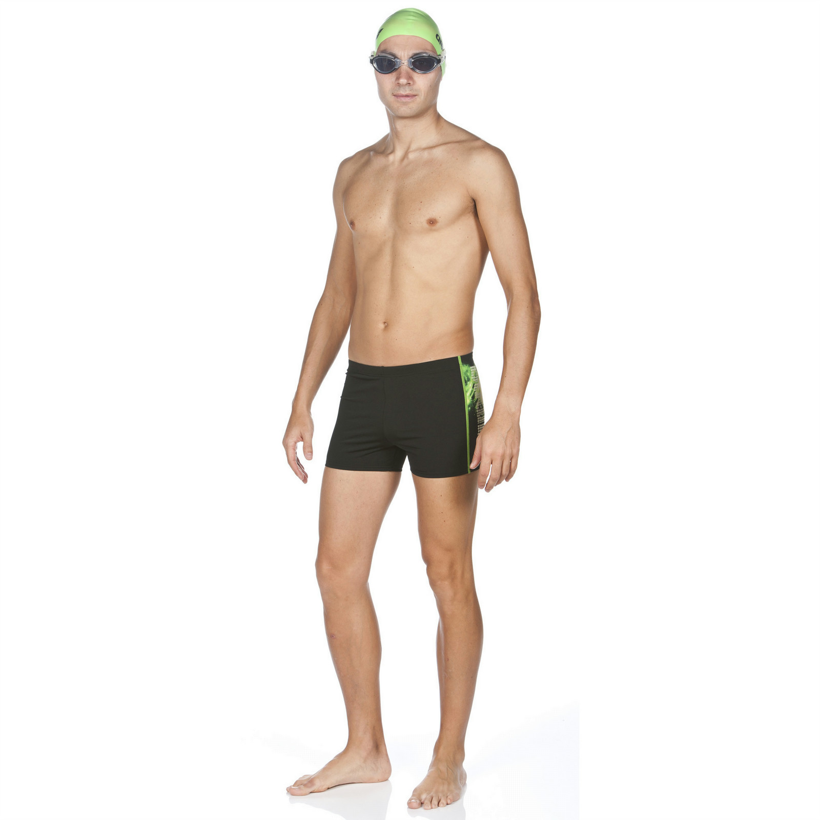 Unsere Badeshorts schmiegen sich für das reibungslose Schwimmen mit null Ablenkungen dicht an den Körper. Sie messen 27 cm an der seitlichen Länge und haben einen verstellbaren Tunnelzug an der Taille. Sie sind im vorderen Bereich für eine zusätzliche Abdeckung gefüttert.
