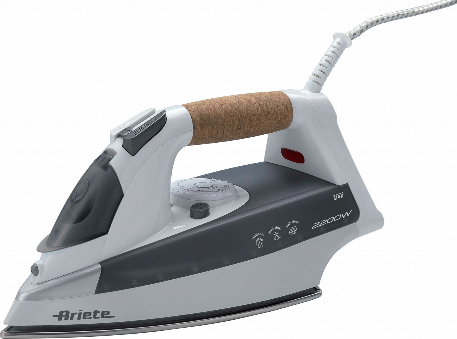 Ariete 6232. Typ: Trocken- & Dampfbügeleisen, Material Bügelsohle: Edelstahl-Bügelsohle, Produktfarbe: Grau. Leistung: 2200 W. Gewicht: 1,35 kg, Paketgewicht: 1,5 kg
