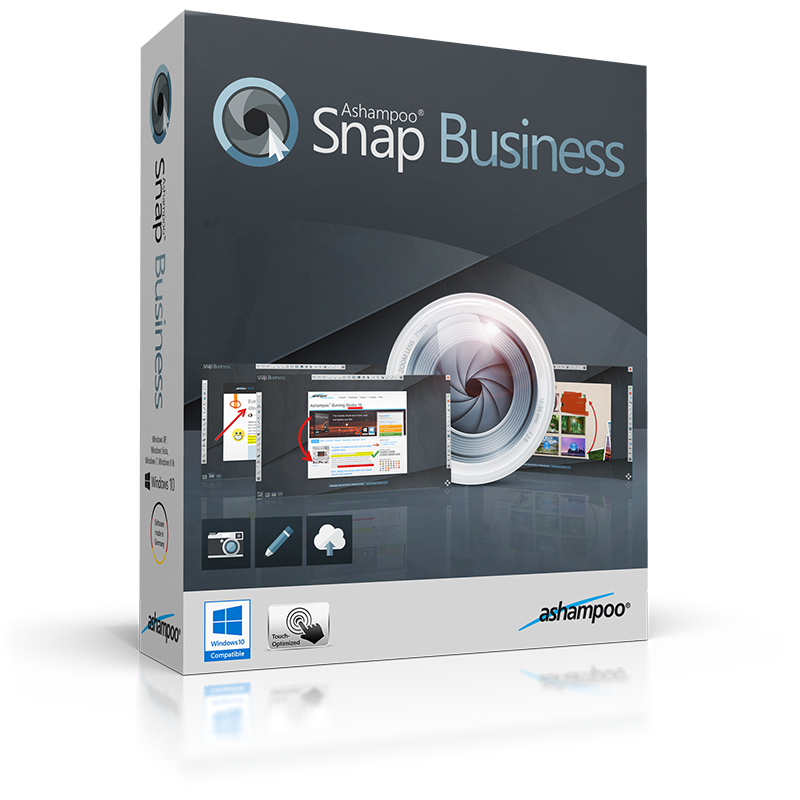 Mit Ashampoo® Snap Business wird das Erstellen von Screenshots und Videos noch einfacher. Arbeiten Sie schlanker, smarter und produktiver mit schnellen 1-Klick Operationen, noch mehr kreativen Gestaltungsmöglichkeiten und verbesserten Sharing-Funktionen. Erstellen Sie blitzschnell pixelgenaue Screenshots und Videos , setzen Sie gekonnt Akzente mit Text-, Hinweis- und Notizelementen sowie Pfeilen, Freiformen und Cliparts und teilen Sie Ihr Werke einfach per Mausklick. Bildschirmfotos unkompliziert aufnehmen, bearbeiten und teilen ist mit Ashampoo® Snap Business kein Problem.