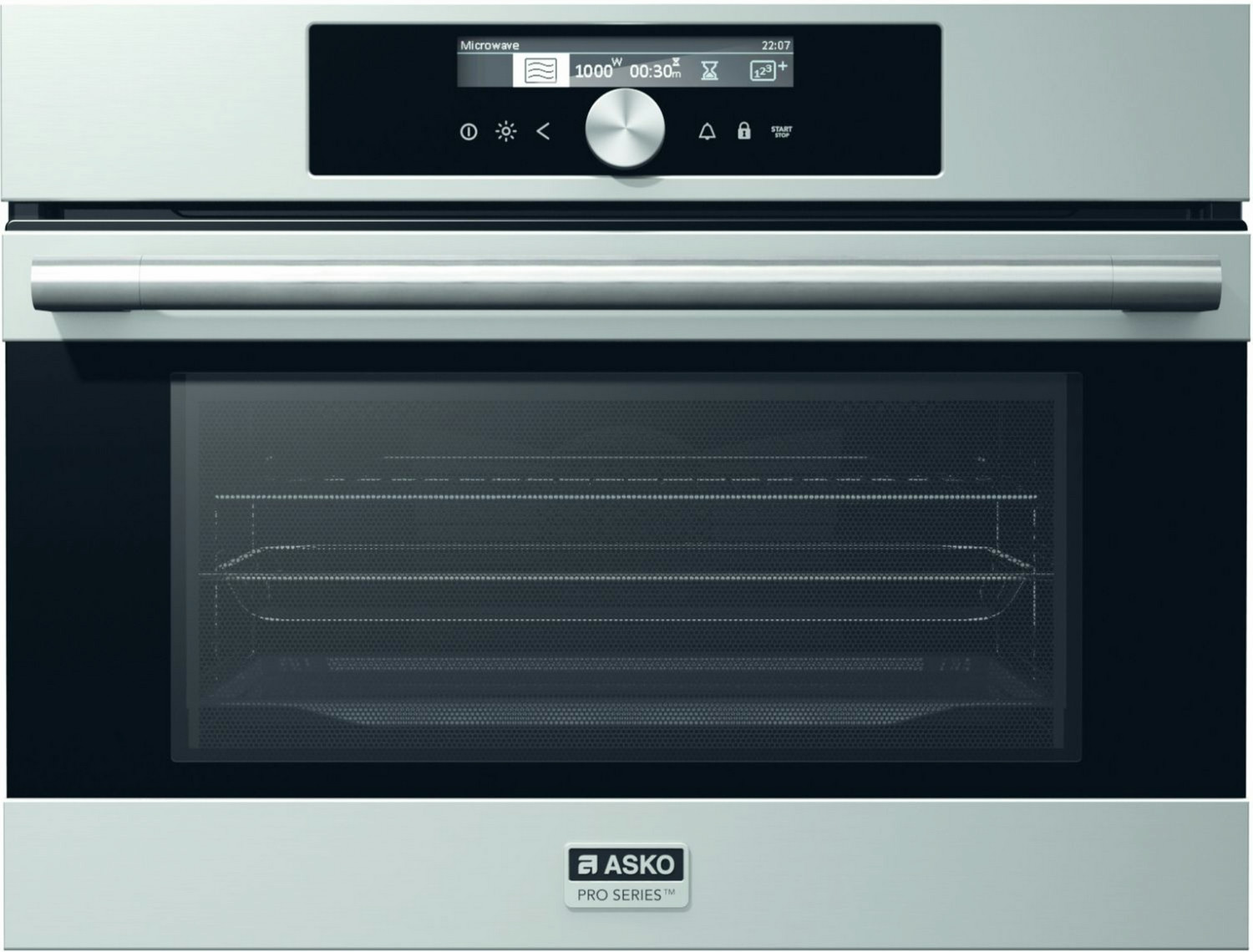 Asko OCM8456S. Ofengröße: Medium, Ofentyp: Electric oven, Gesamtes Fassungsvermögen Garraum Ofen: 50 l. Produktfarbe: Edelstahl, Kontrolltyp: Rotation, Integrierte Uhr: Elektronisch. Timer-Typ: Digital. Geräuschpegel: 47 dB. Energie-Effizienzklasse: A, Energieverbrauch (konventionell): 0,89 kWh, Energieverbrauch (erzwungene Konvektion): 0,79 kWh