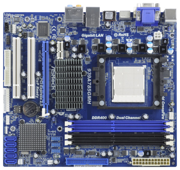 AMD 785G, micro ATX, 4x DDR, Socket 939, 5x SATA II, ATA, USB 2.0, D-Sub, HDMI, AMD Radeon HD 4200, 7.1 ch HD audio, Gigabit Ethernet, AMI BIOS 8MB