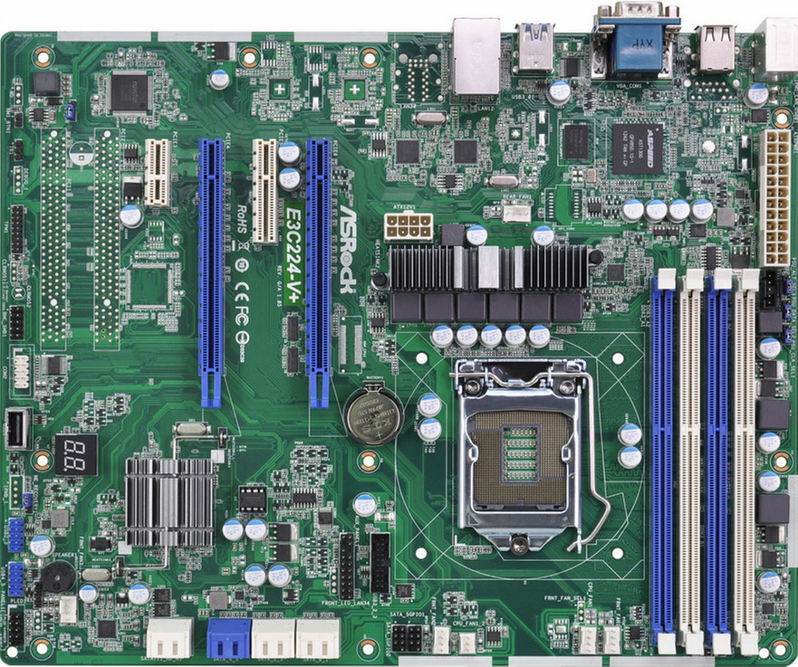 Asrock E3C224-V+. Motherboardformfaktor: ATX, Komponente für: Server. Prozessorhersteller: Intel, Prozessorsockel: LGA 1150 (Socket H3), Intel® Xeon-Serie: E3-1200. Unterstützte Arbeitsspeicher: DDR3-SDRAM, Unterstützte Arbeitsspeichergeschwindigkeit: 1333,1600 MHz, RAM-Speicher maximal: 32 GB. Festplatten-Schnittstelle: Serial ATA II, Serial ATA III, RAID Level: 0, 1, 5, 10. Anzahl USB 3.0 (3.1 Gen 1) Typ-A Ports: 1, 2