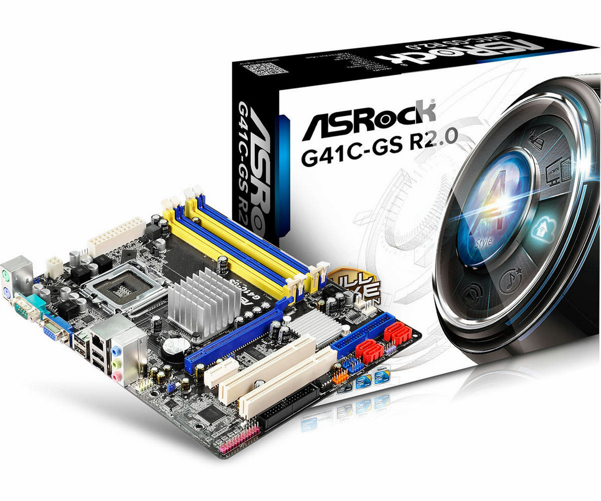 Asrock G41C-GS R2.0. Unterstützte Arbeitsspeicher: DDR2-SDRAM,DDR3-SDRAM, Arbeitsspeicher Typ: DIMM, Unterstützte Arbeitsspeichergeschwindigkeit: 533,667,800,1066,1333 MHz. Prozessorfamilie: Intel, Kompatible Prozessoren: Celeron,Celeron Dual-Core,Core 2 Duo,Core 2 Extreme,Core 2 Quad,Pentium Dual-Core, Prozessorsockel: LGA 775 (Socket T). Unterstützte Speicherlaufwerk-Schnittstellen: IDE, Serial ATA II. LAN-Controller: Realtek RTL8111GR, Ethernet Schnittstellen Typ: Gigabit Ethernet. Komponente für: PC, Motherboard Chipsatz Familie: Intel, Motherboard Chipsatz: Intel G41