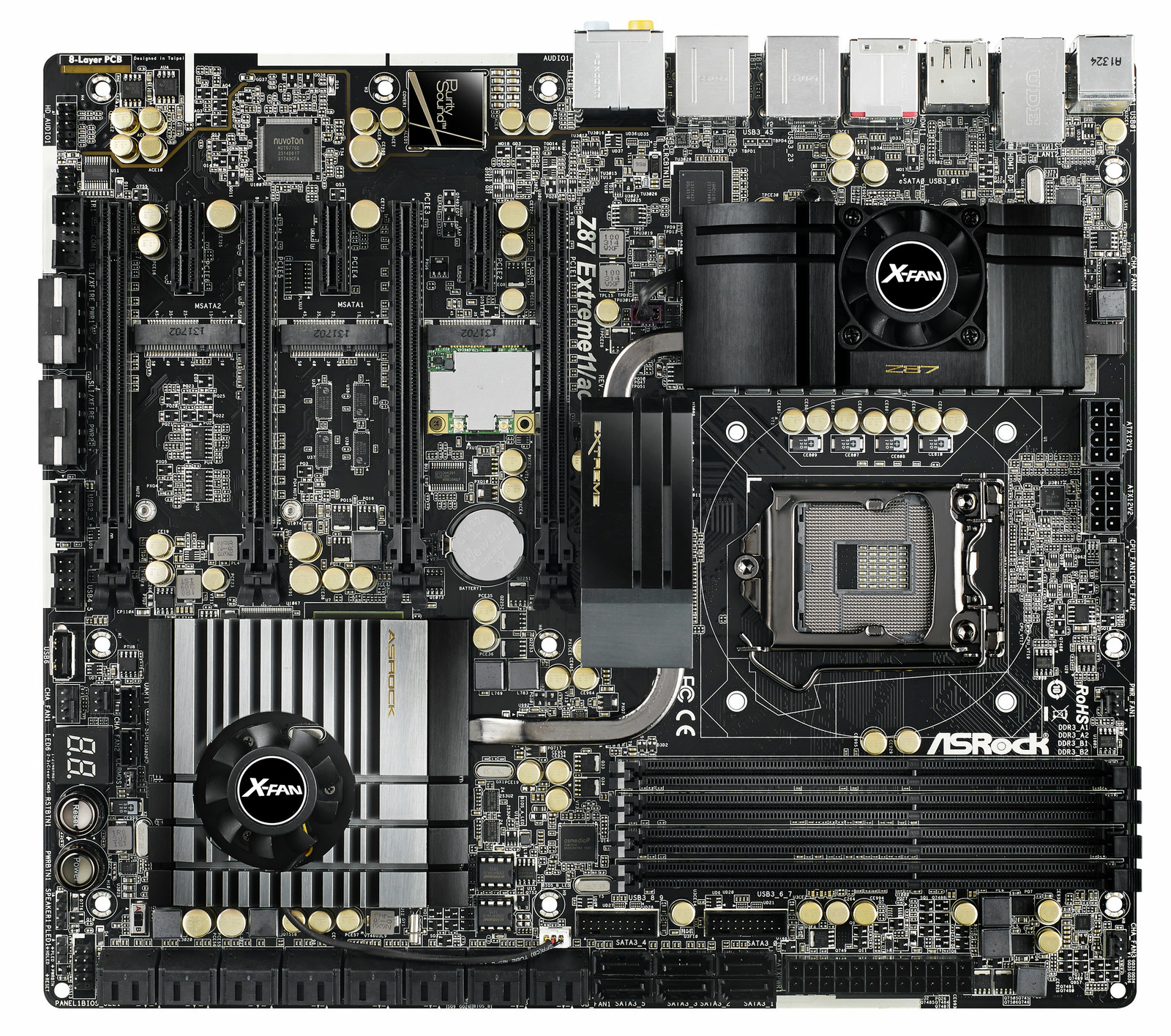 Z87 Extreme11/ac, LGA1150, Z87, 4x DIMM, XMP, Realtek ALC1150, Gigabit Ethernet, 802.11a/b/g/n/ac 2.4/5GHz, Bluetooth 4.0 HS, SATAIII, USB 3.0, HDMI, DP, 2x Thunderbolt 2, eSATA, Vertical A USB 2.0, EATX