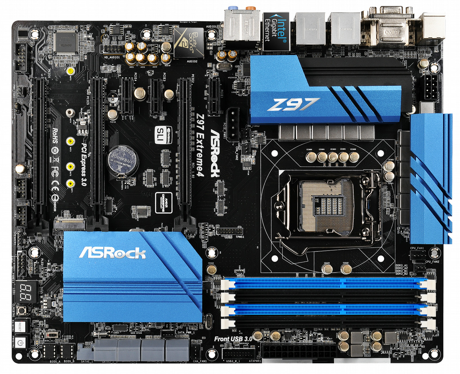 Z97 Extreme4, Intel Z97, Socket 1150, 4th Generation Intel Core i7/i5/i3/Pentium/Celeron, 4 x DDR3 3200+, 3 x PCI Express 3.0 x16, 8 x SATA3, 1 x M.2, Gigabit LAN, ATX