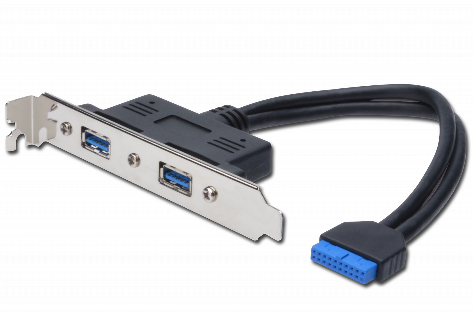 USB 3.0 Slotblechkabel, 2x type A-2x10pin IDC, Bu/Bu,0.25m, USB 3.0 kompatibel, UL, be