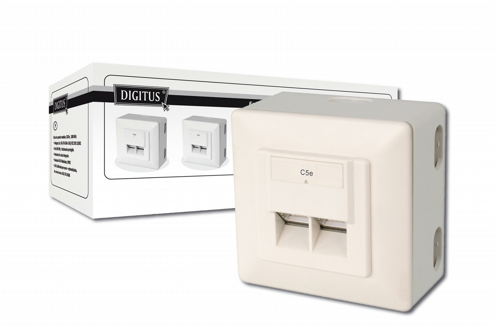 DIGITUS CAT 5e Modulare Anschlussdose, geschirmt, 2x RJ45, 8P8C, LSA, Farbe reinweiß RAL 9010 Aufputz, Set 5 St.