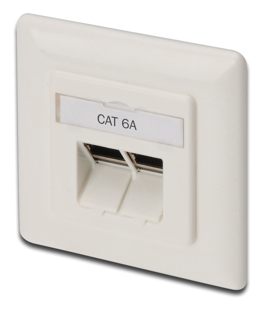 DIGITUS CAT 6a Class EA Anschlussdose, geschirmt, 2x RJ45, LSA, RAL 9010, Class EA, Unterputz Horizontale Kabelinstallation