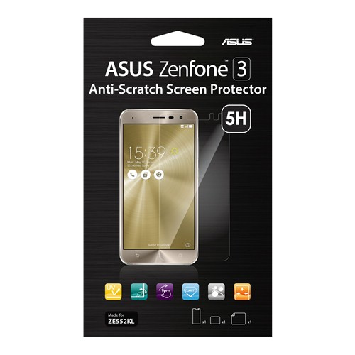 ASUS Anti-Scratch Screen Protector ZE552KL. Typ: klar, Gerätetyp: Handy/Smartphone, Markenkompatibilität: Asus. Anzeigegerät: 142,46 x 69,3 mm, Bildschirmdiagonale: 14 cm (5.5 Zoll), Dicke: 0,25 mm. Menge pro Packung: 1 Stück(e)