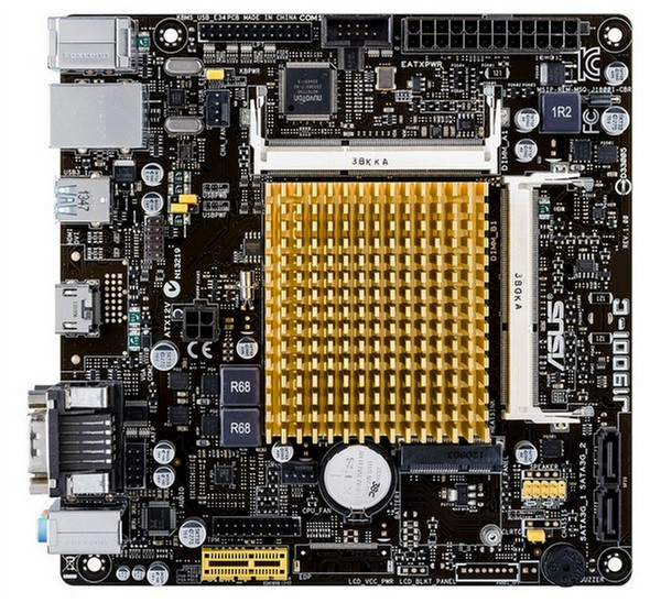 ASUS J1900I-C. Unterstützte Arbeitsspeicher: DDR3L-SDRAM, Arbeitsspeicher Typ: SO-DIMM, Unterstützte Arbeitsspeichergeschwindigkeit: 1333 MHz. Prozessorfamilie: Intel, Kompatible Prozessoren: Celeron, Prozessorsockel: BGA 1170. Unterstützte Speicherlaufwerk-Schnittstellen: Serial ATA II. LAN-Controller: Realtek RTL8111G, Ethernet Schnittstellen Typ: Schnelles Ethernet, Gigabit Ethernet. Komponente für: PC, Motherboard Chipsatz Familie: Intel, Motherboardformfaktor: mini ITX