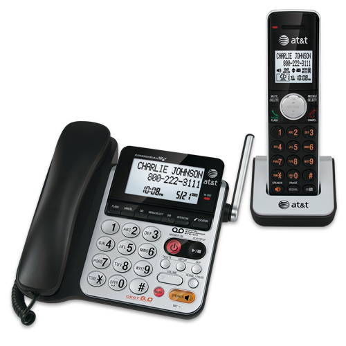 AT&T CL84100. Typ: Analog/DECT telephone, Aufnahmezeit: 14 min. Befestigungstyp: Wand, Produktfarbe: Schwarz, Silber. Lautstärkeregler: Digital, Unterstützte Sprachen: Englisch, Französisch. Telefonbuch Kapazität: 50 Eintragungen. Farbe der Hintergrundbeleuchtung: Weiß
