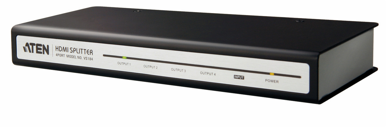 The VS184 HDMI Splitter is the perfect solution for anyone who needs to send one source of digital high definition video to four displays at the same time. It supports all HDMI-enabled equipment, such as DVD players, satellite set-top boxes and all HDMI displays.