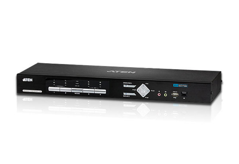 Split-Screen KVM Control Center mit 4 Ports (USB/DVI-D) und USB 2.0-Hub & Tonübertragung