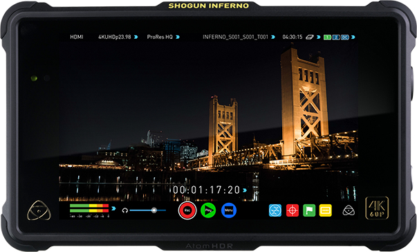 Atomos Shogun Inferno. Bildschirmdiagonale: 18 cm (7.1 Zoll), Helligkeit: 1500 cd/m², Bildschirmauflösung: 1920 x 1200 Pixel. Touch-Technologie: Multi-Touch. Produktfarbe: Schwarz, Gehäusematerial: Acrylnitril-Butadien-Styrol (ABS), Polycarbonat. Breite: 214 mm, Höhe: 127 mm, Tiefe: 45 mm
