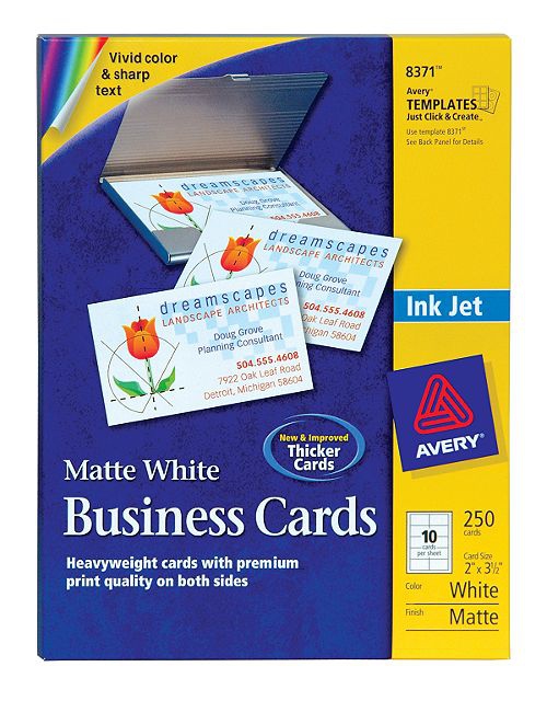 Avery 8371. Breite: 88,9 mm, Höhe: 50,8 mm. Medienanzahl pro Paket: 2 Blätter, Menge pro Packung: 250 Stück(e)