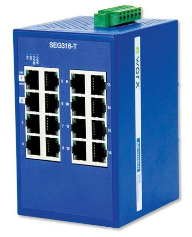 B&B Electronics SEG316-T. Switch-Typ: ungemanaged. Basic Switching RJ-45 Ethernet Ports-Typ: Gigabit Ethernet (10/100/1000), Kupfer Ethernet Verkabelungstechnologie: 10BASE-T,100BASE-TX,100BASE-T,1000BASE-T,1000BASE-TX. Netzstandard: IEEE 802.1p,IEEE 802.3,IEEE 802.3ab,IEEE 802.3az,IEEE 802.3u,IEEE 802.3x,IEEE 802.3z. MAC-Adressentabelle: 8000 Eintragungen, Routing-/Switching-Kapazität: 32 Gbit/s. Unterstützte Sicherheitsalgorithmen: SNMP