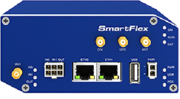 B&B Electronics SmartFlex. Ethernet LAN Datentransferraten: 10,100 Mbit/s. Datennetzwerk: LTE. Produktfarbe: Blau. Zertifizierung: E8. Breite: 55 mm, Tiefe: 97 mm, Höhe: 125 mm