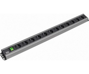 Steckdosenleiste 90° mit 1x Wippschalter grün, 2 HE, 12 Schutzkontaktsteckdosen