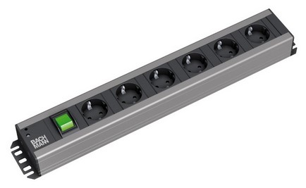 Steckdosenleiste 90° mit Überspannungsschutz und 1x Wippschalter grün, 6 Schutzkontaktsteckdosen