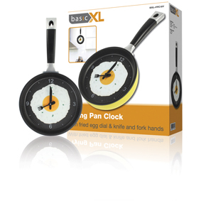Küchenwanduhr Bratpfanne gelb